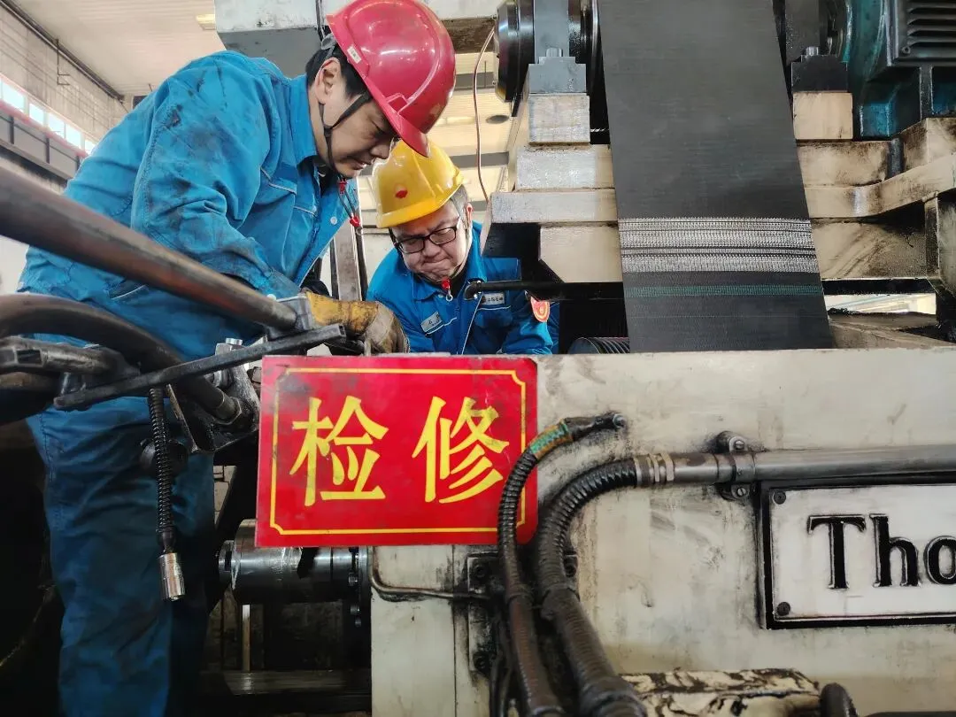 车间里,维修钳工带着工具钻进狭窄的设备空间,借助导链小心翼翼校正平衡,多年的维修经验让他的每一个动作都精准利落;岗位则凭着对设备原理的熟稔,不断提醒关键参数和故障要点;安全管理人员全程紧盯安全规范,安全帽上的反光条在黑暗中闪烁,像一颗定心丸;车间主任则在现场统筹协调,物料调配、人员轮换、进度把控,每一项都安排得井井有条。