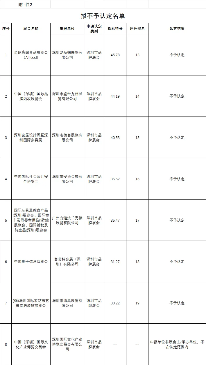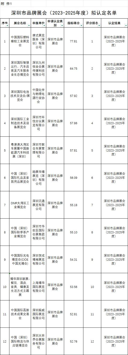 深圳市商务局关于《深圳市品牌展会(2023-2025年度)拟认定名单》公示的通知