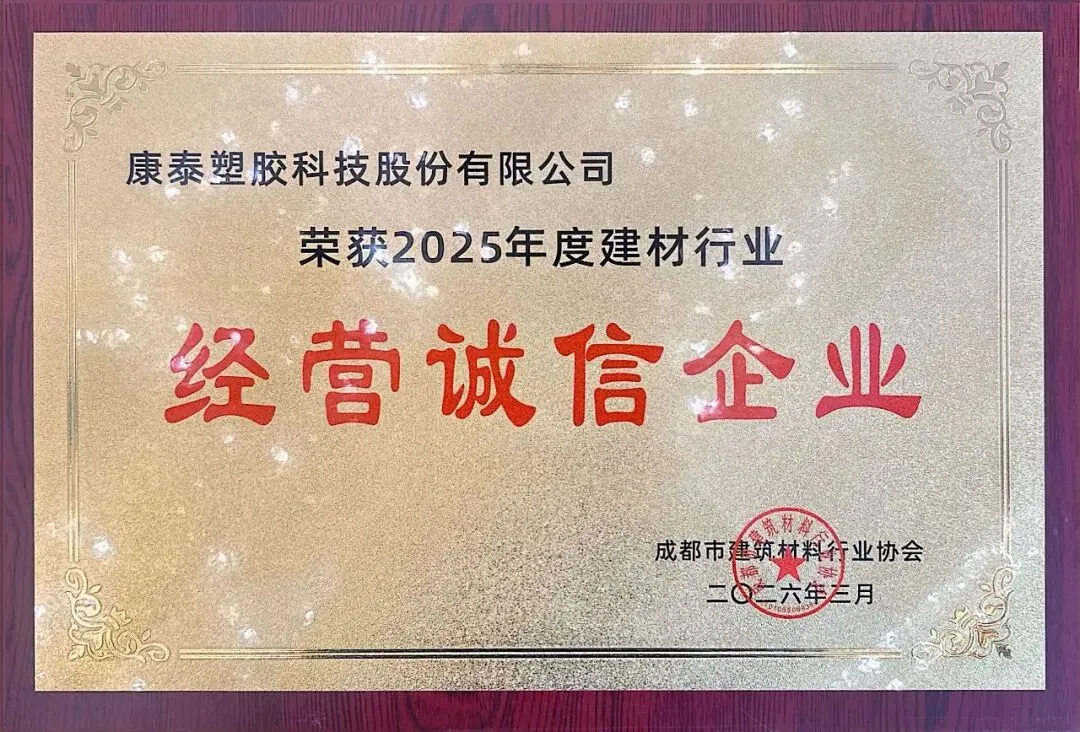 康泰塑胶荣膺成都建材行业协会经营诚信企业称号