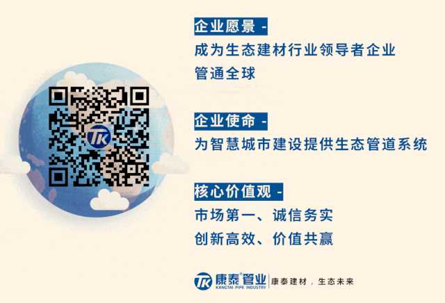 康泰塑胶科技股份有限公司是一家集专业研发、制造、销售塑胶管道为一体的集团企业,下辖6家子公司。是国家高新技术企业,国家企业技术中心,国家知识产权优势企业,中国轻工业科技百强企业,中国塑料管材行业十强企业,四川质量奖获奖企业。全面提供民用建筑管材管件,市政给水、排污、燃气、通信、电力、农牧管材管件,不锈钢管材管件,以及精品家装管材管件,品种规格达10000多种。为缔造绿色品质生活贡献力量。康泰建材,生态未来。