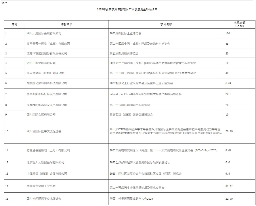 附件:2025年会展政策申报项目产业发展资金补贴名单