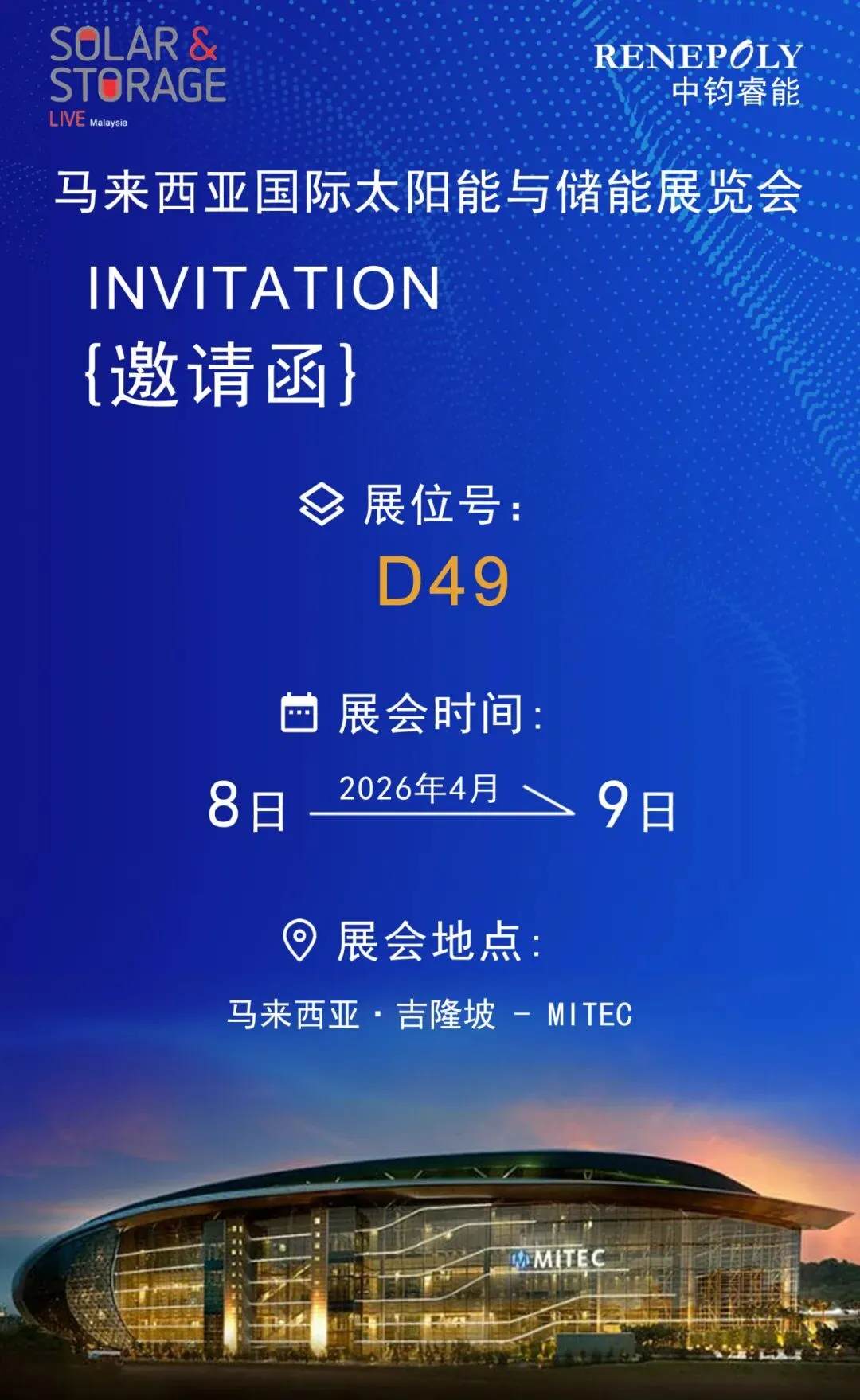 中钧睿能期待在 Solar & Storage Live Malaysia 2026 与您相见!