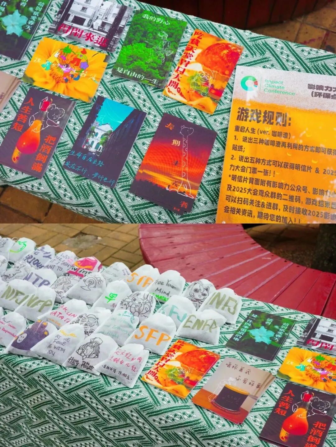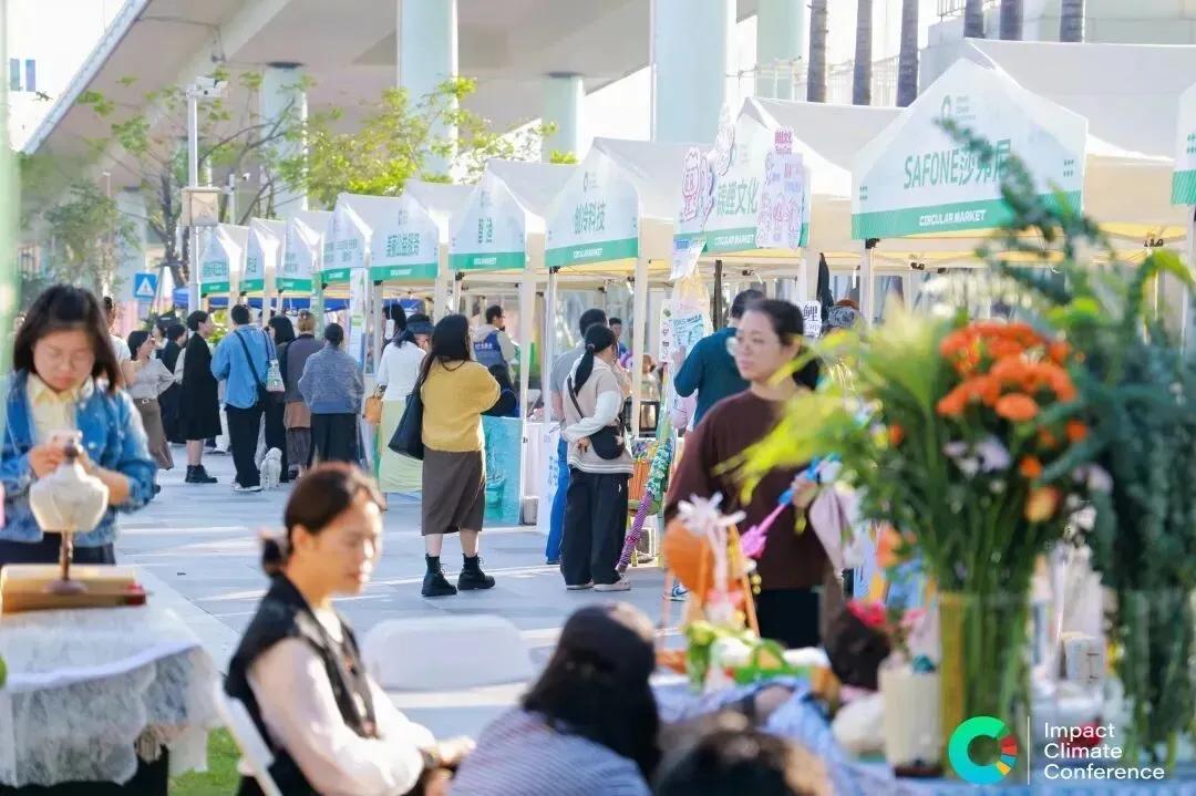 每一届的大会现场都会设置可持续展位,2025年大会我们做了全新升级,单独设立“循环集市”展区,在酒店内外共有40+展位,多元化展示了科普生态知识的公益产品、凝练了企业环保科技的技术产品、贯彻可持续品牌理念的生活类日用产品。(详情可点击了解??亮点回顾|影响力气候创新节:循环集市)