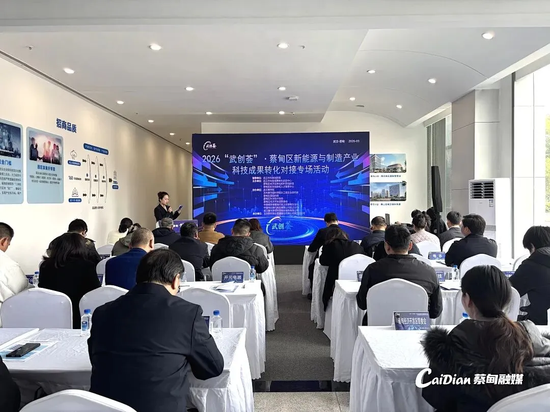 3月18日,2026“武创荟”·蔡甸区新能源与智能制造产业科技成果转化对接专场活动在联东U谷武汉国际创新中心成功举办。本次活动以“‘智’汇蔡甸,‘能’创未来”为主题,聚焦产业前沿,搭建科技成果与产业需求精准对接平台,加速创新成果产业化,培育新质生产力。