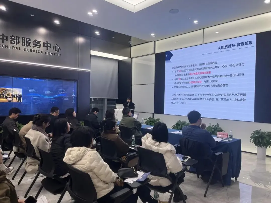 东湖高新区科创局相关负责人围绕高企认定条件、申报流程、材料准备要点进行了详细解读,并对高企培育支持政策、科技型中小企业评价入库政策进行了系统介绍。