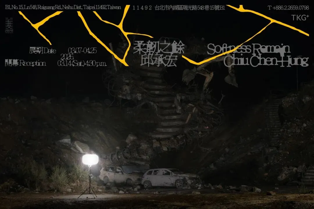 迎春之际,TKG+再次迎来艺术家邱承宏的全新个展《柔韧之余》。生长于火环带上的台湾岛,天灾之于个体的感受构筑于观见新闻播报中的满地狼藉,更体现在亲身经历大地震盪时的惴惴不安,灾难降临时的破碎是那样鲜活地在记忆的色盘上留下了浓厚的底色,也因此如何面对、感受、记忆那破碎后的日常,是每一个本土居民所共有的经验。不同于如村上村树笔下《神的孩子都在跳舞》等灾难文学以众生百态之姿来回应个体如何应对天地以万物为刍狗的不仁,《柔韧之余》所切入的是关于如何记忆的讨论,将时间置于灾后遗迹的残片与重量之中,邱承宏透过凋塑的语彙,试着将破碎失序的瞬间重新纳入新的秩序之中。