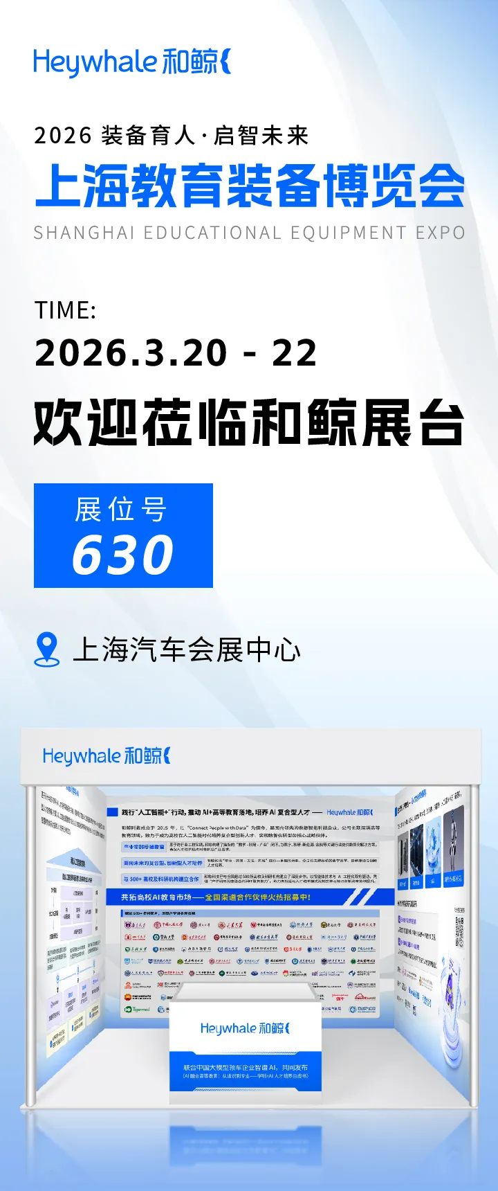 我们期待与各位教育界同仁、合作伙伴深入交流,欢迎各位新老朋友前来和鲸展台,我们不见不散!