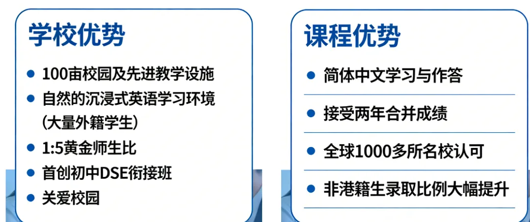 校方重点介绍了学校IB与DSE的课程体系,其中DSE课程凭借独特优势,成为众多择校家庭的“心头好”——它是全球唯一允许中文简体答题的国际课程,极大降低了中国背景学生的应试门槛,同时成绩被全球超1000所高校认可,涵盖香港八大公立大学、英国G5、澳洲八大等世界顶尖学府,更可通过“文凭试收生计划”免试申请内地165所高校,包括复旦、同济等名校,升学路径多元宽广。此外,学校首创的DSE衔接班,能帮助学生平稳过渡课程难度,快速适应DSE学习节奏,为后续升学筑牢基础。
