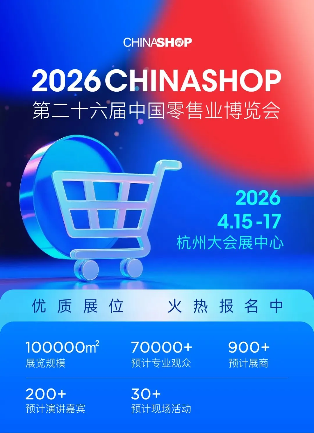 中国零售业博览会(CHINASHOP)创办于1999年,在秉持着为行业搭建高 效、精准的零供对接平台初衷之下,规模不断扩增,达到10万㎡超大展示空 间,展品范围不断扩大,涵盖零售设施设备、创新技术、潮流商品与零售品牌 等全产业链,现场活动不断丰富,从Hi-shop到Retail X-lab,从黑马专区到潮 味VOGUE,从消费品渠道选品会到CCFA新消费论坛系列会议,内容涵盖之广,内涵专研之深,参与人员之众,成为零售行业每年必去的顶级盛事。 CHINASHOP一词也成为了解中国零售、看尽中国零售的代名词。