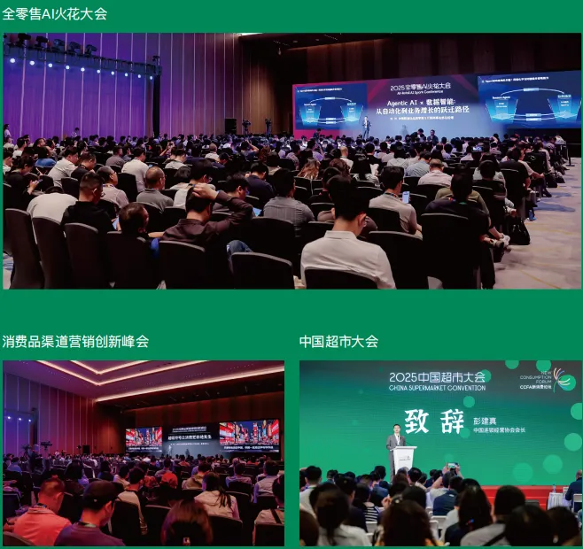 部分2025到场零售商:沃尔玛、盒马、大润发、华润万家、天虹、胖东来、 Costco、比优特、Fudi、美宜佳、罗森、711、百果园、钱大妈、永旺、宜家、京 东、苏宁、小象、屈臣氏、Hotmaxx、淘小胖、雅斯、鲜风生活、零食有鸣……