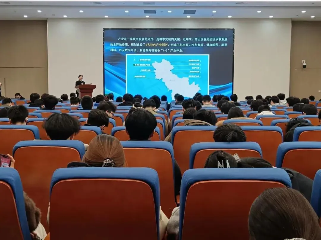 随后,博山区公共就业和人才服务中心主任周萍就对博山产业发展与人才政策作专题推介。“博山不是一个只靠情怀留住人的地方,我们有实实在在的产业支撑。”她介绍,作为淄博市南部的产业核心区,集聚了北京京丰制药(山东)有限公司、佶缔纳士机械有限公司等龙头企业,形成了以高端装备制造、新能源、健康医药为代表的现代产业集群。从“吃住行游购娱”到医疗保障,博山区还为青年人才量身打造了“颜小青”专属服务措施。“只要你有才华,博山就有舞台;只要你肯奋斗,博山就有未来。”这番承诺赢得在场学子热烈掌声。