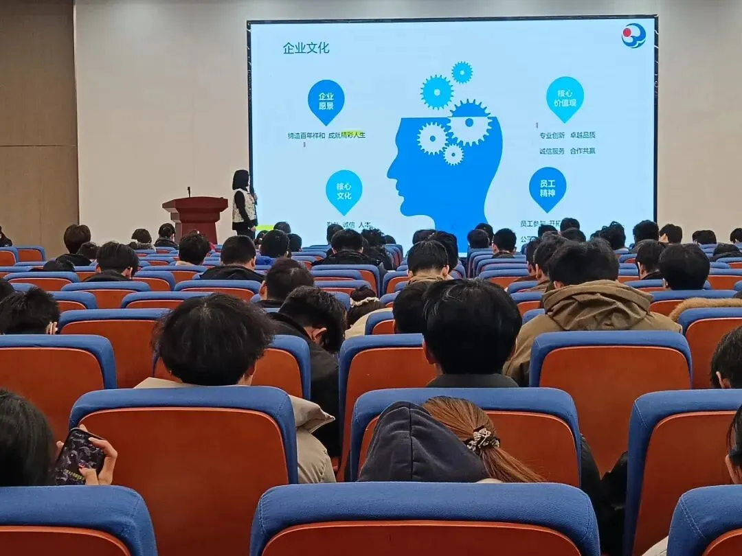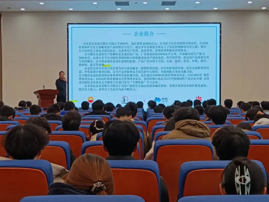 企业推介环节,山东鲁辰泵业有限公司与山东祥和集团负责人先后上台,详细介绍企业发展前景、薪资待遇与人才培养体系,期待与山农工学子携手共成长。