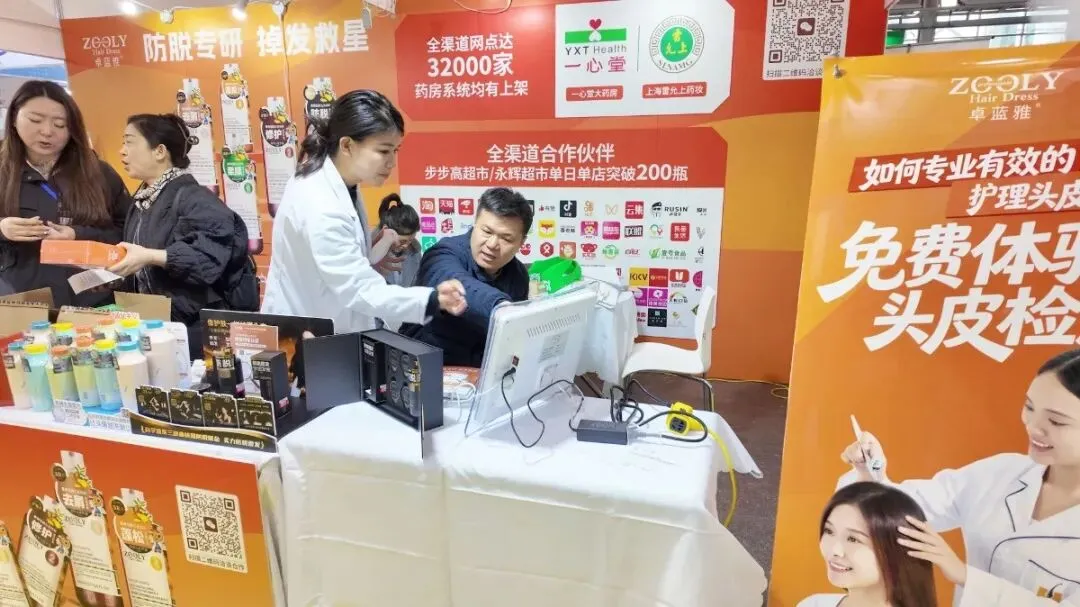 展会现场,卓蓝雅展位人气高涨,工作人员通过仪器检测、现场讲解、试用体验,让渠道伙伴直观感受产品与服务的专业性,强化“卓蓝雅=可做专业头皮护理的功效型防脱洗护品牌”认知,吸引大批客商驻足洽谈,工作人员围绕产品、政策、合作等核心内容深度沟通,现场达成多项意向合作,品牌在医药渠道的认可度与发展潜力尽显。
