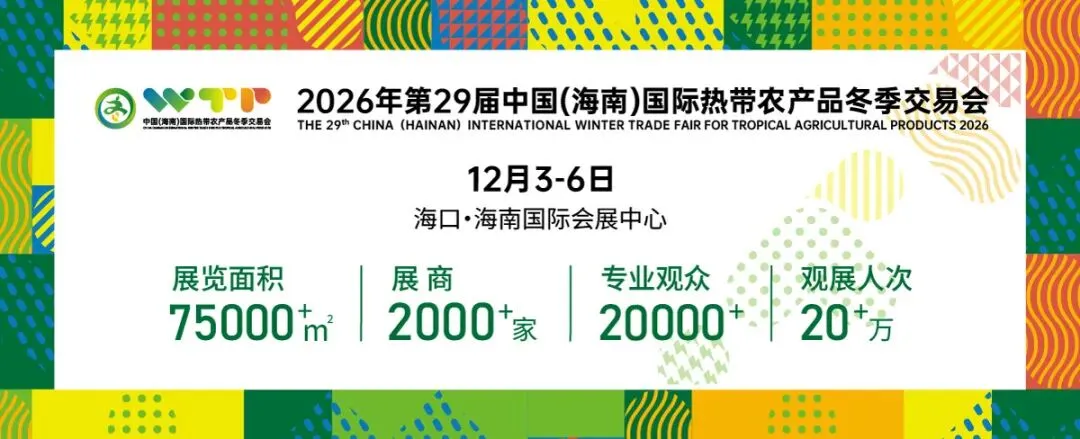 无论您是农业企业、商协会代表,还是农业科研机构、投资机构人士,亦或是关注热带农业发展的各界朋友,2026年海南冬交会都将是您不容错过的行业盛会。即日起,全球预报名通道正式开启,您可通点击下方图片在线报名,提前锁定展位,抢占市场先机。