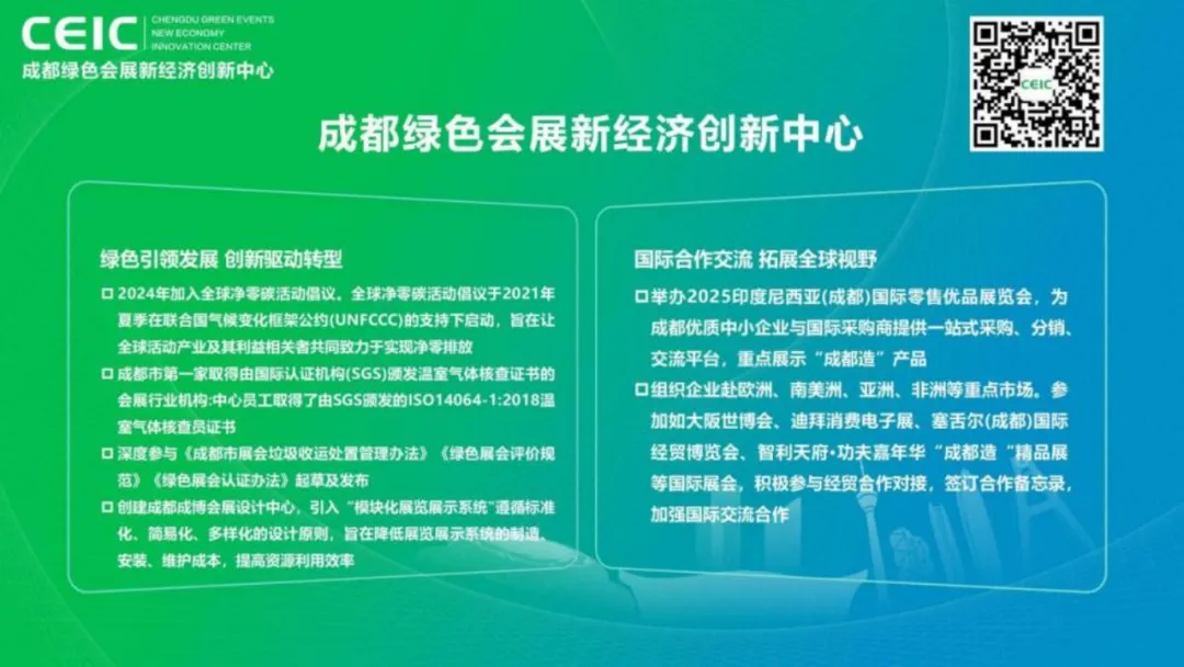 •赛道:零碳展、循环展装、绿色场馆、绿色搭建、绿电应用、碳足迹管理。