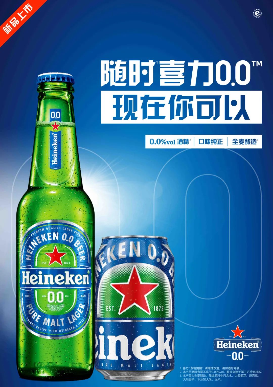 2023年5月,喜力0.0™啤酒在喜力®啤酒京东自营旗舰店及各大电商平台正式上市发售,这个夏天,让我们共同期待喜力0.0™为广大中国消费者提供多场景优质体验的同时,引领中国啤酒市场新风潮。随时喜力0.0™,现在你可以!