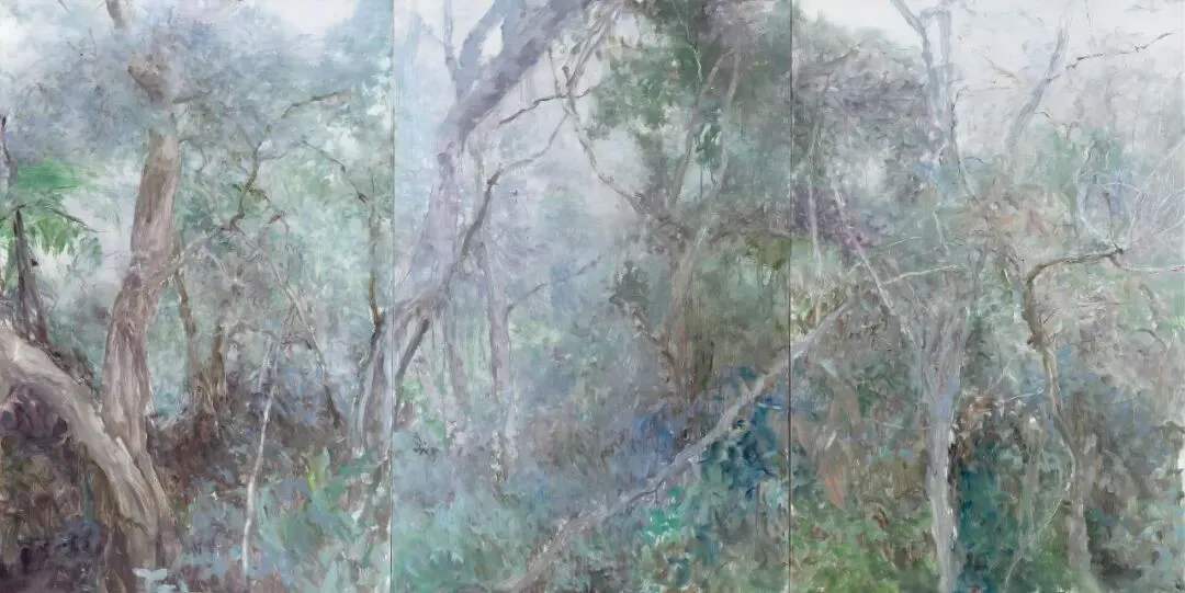 The work Grand Scenery (2013) showcases the tranquility, mistiness, and depth of nature as depicted by He Duoling, aligning closely with the artistic conception of traditional Chinese landscape painting: cool yet vibrant, serene yet profound, detached yet ethereal, subtly revealing the mysteries of order and chaos, form and emptiness. The mystery that He has been exploring for years is now increasingly associated with vitality, ethereality, and clarity. For him, the so-called mystery is something unknowable yet deeply captivating. The highest contribution of art lies in providing and inspiring an ineffable resonance with the mysterious harmony of life and the universe. This is the deepest tremor of "beauty" within the soul. He Duoling's artistic goal is not to venture outward to document reality but to journey inward, hoping to find his true soul—only his inner world is the real reality.