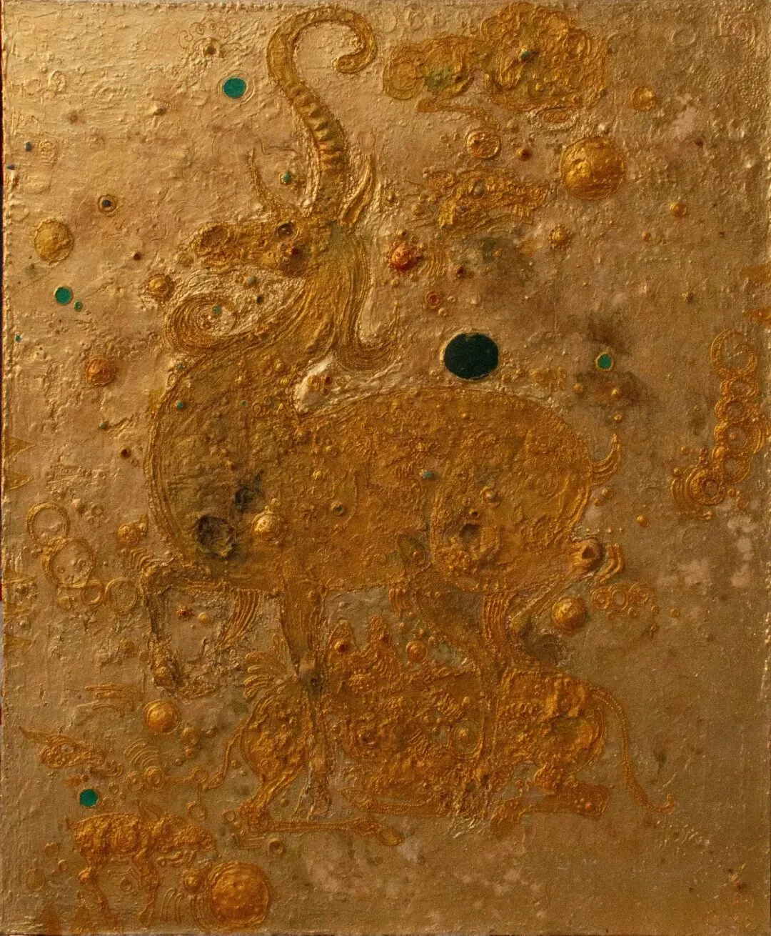 Lkhajav, Golden-7, Gold leaf, natural stones, acrylic on canvas, 180 × 150 cm, 2022 © Courtesy of the Artist and A Thousand Plateaus Art Space