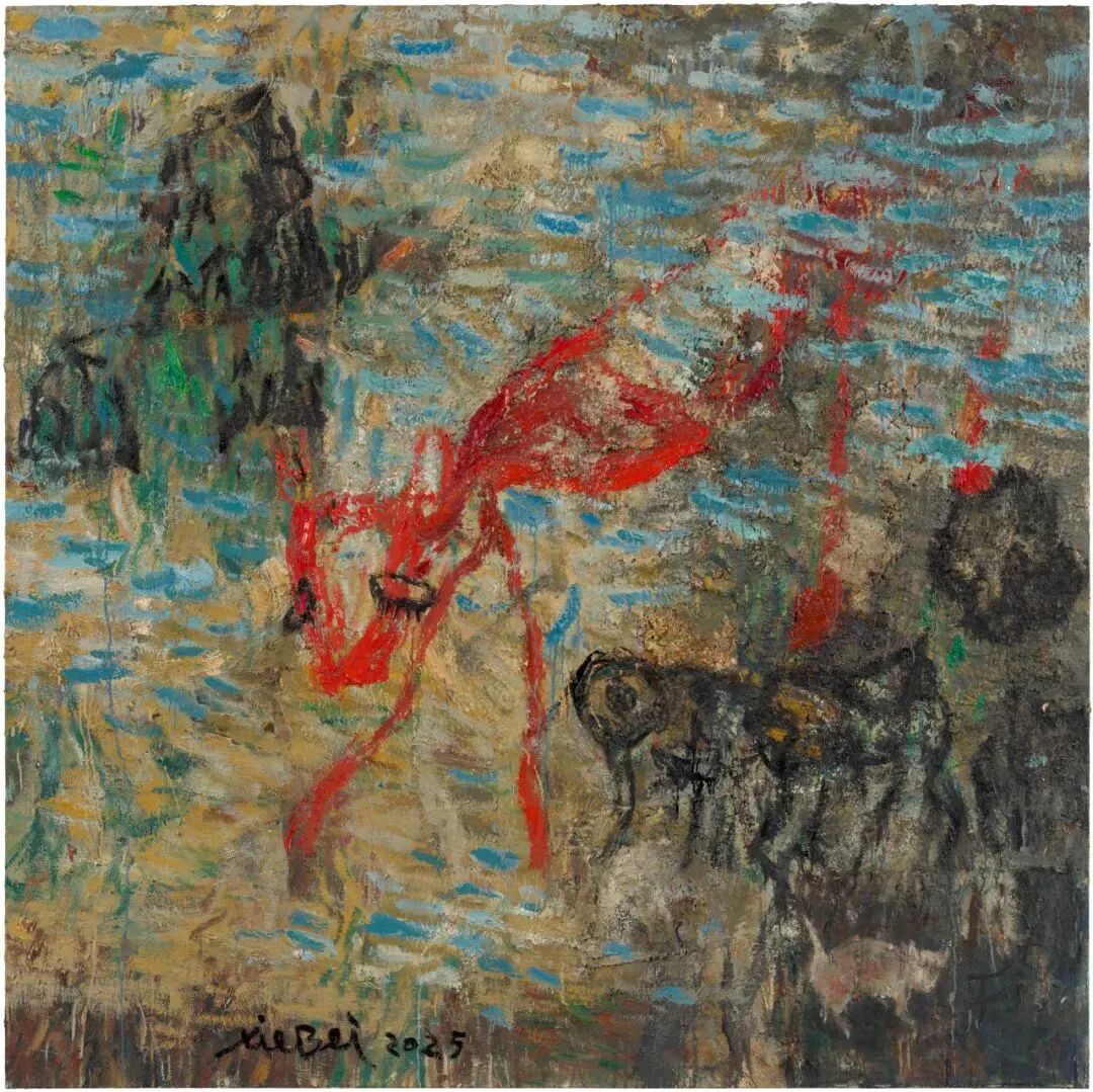 Xie Bei (b. 1964) was born in Chongqing. He graduated from the Oil Painting Department of Sichuan Fine Arts Institute in 1988 and currently works and lives in Chongqing. Xie's artistic practice embodies a free-spirited embrace of improvisation, chance, and independence. His expressionist brushwork blends surrealist imagery, fusing fragments of literature, poetry, nature, war, and emotion into explorations of history's intricate tapestry.