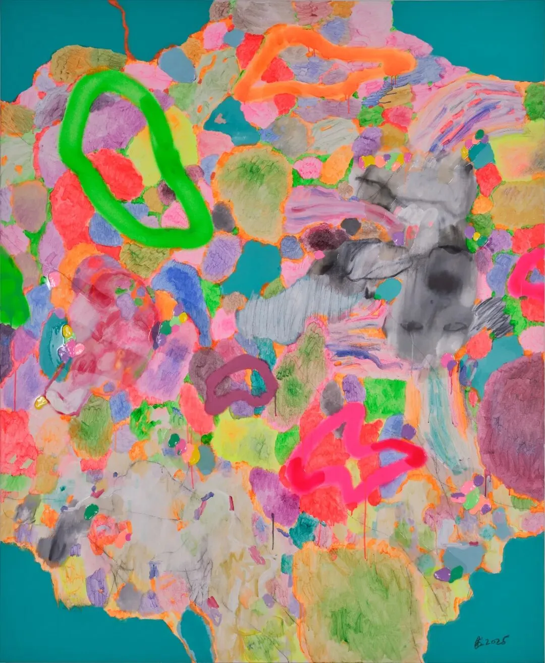 Yang Shu, Untitled 2025Y2, Acrylic resin and colored clay on canvas, 220 × 180 cm, 2025 © Courtesy of the Artist and A Thousand Plateaus Art Space