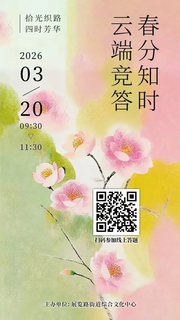 以节气之名,赴四时之约。展览路街道“拾光织路・四时芳华”——二十四节气专题系列活动温情启幕,3月20日,首场「春分知时・云端竞答」线上竞答活动将举办,邀您在趣味竞答中,探寻节气背后的文化密码,感悟先人的自然智慧。此后,更多精彩主题活动将在全年陆续解锁,陪伴大家在流转的时光里,共赴一场文化之约。