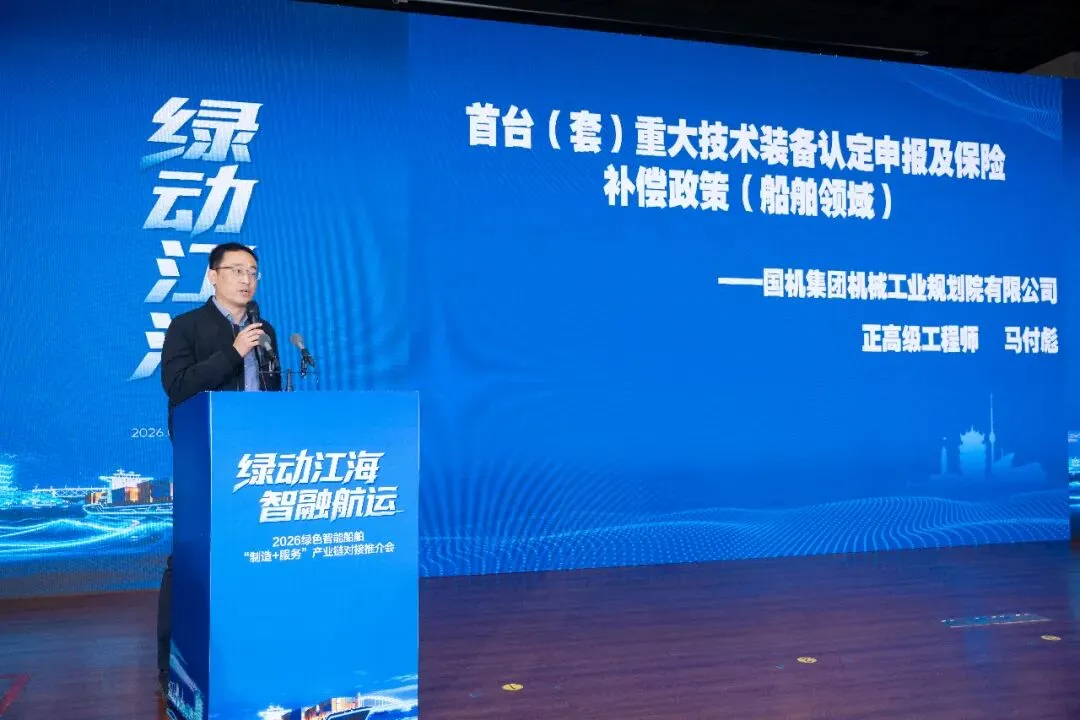 3月12日,以“绿动江海 智融航运”为主题的绿色智能船舶“制造+服务”产业链对接推介会在武汉市江汉区举办。会议吸引船舶领域重点企业、行业机构、金融保险系统的专家和企业负责人共约150人参加,湖北省国防科工办、武汉市经信局及江汉区主要领导出席并致辞。机械规划院受邀参加会议并为参会企业做首台(套)重大技术装备保险补偿政策解读。