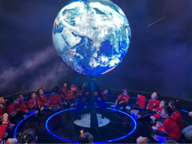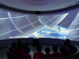 幼儿穿越科技隧道,观看了八大行星演示系统、航天奥秘,全方位、多角度展现太空和航天航空科技发展,让小朋友们感受现代科技带来的乐趣。