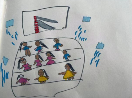 常潇月指着屏幕向大家说:“我妈妈在水库工作呢!我放假还去了好凉快呀!”
