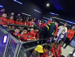 幼儿井然有序的坐上飞行座椅,观看3D影院感知,沁水风貌和大好河山。