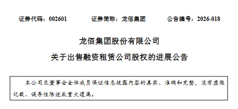 3月18日,龙佰集团发布公告,公司及全资子公司佰利联(香港)有限公司拟将持有的佰利联融资租赁(广州)有限公司的98.50%股权全部转让给焦作市国有资本运营(控股)集团有限公司,上述交易的相关工商变更登记手续已完成。