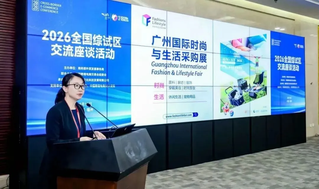 近日,广州国际时尚与生活采购展作为重点推介项目亮相2026全国综试区交流座谈活动。本次活动由商务部外贸发展事务局主办,中国跨境电商交易会组委会联合主办,汇聚近百位嘉宾,围绕跨境电商政策创新、产业协同、出海模式升级等议题展开深入交流。