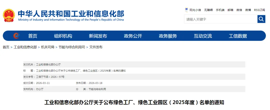 按照《绿色工厂梯度培育及管理暂行办法》《工业和信息化部办公厅关于开展2025年度绿色工厂推荐工作的通知》有关要求,经申报单位自愿申报、省级工业和信息化主管部门推荐及专家审核、公示等程序,确定了绿色工厂、绿色工业园区(2025年度)名单,现予以公布。有关事项通知如下: