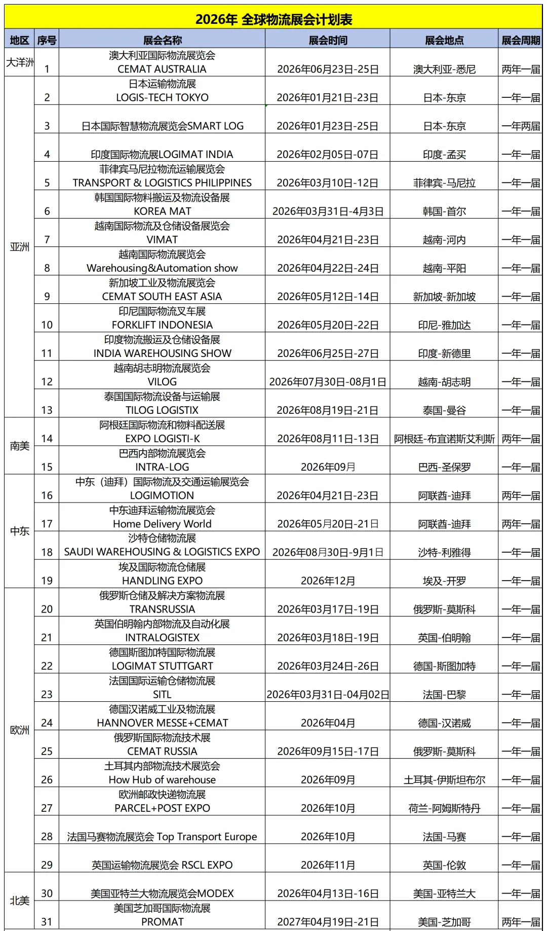 2026年全球物流展会计划表