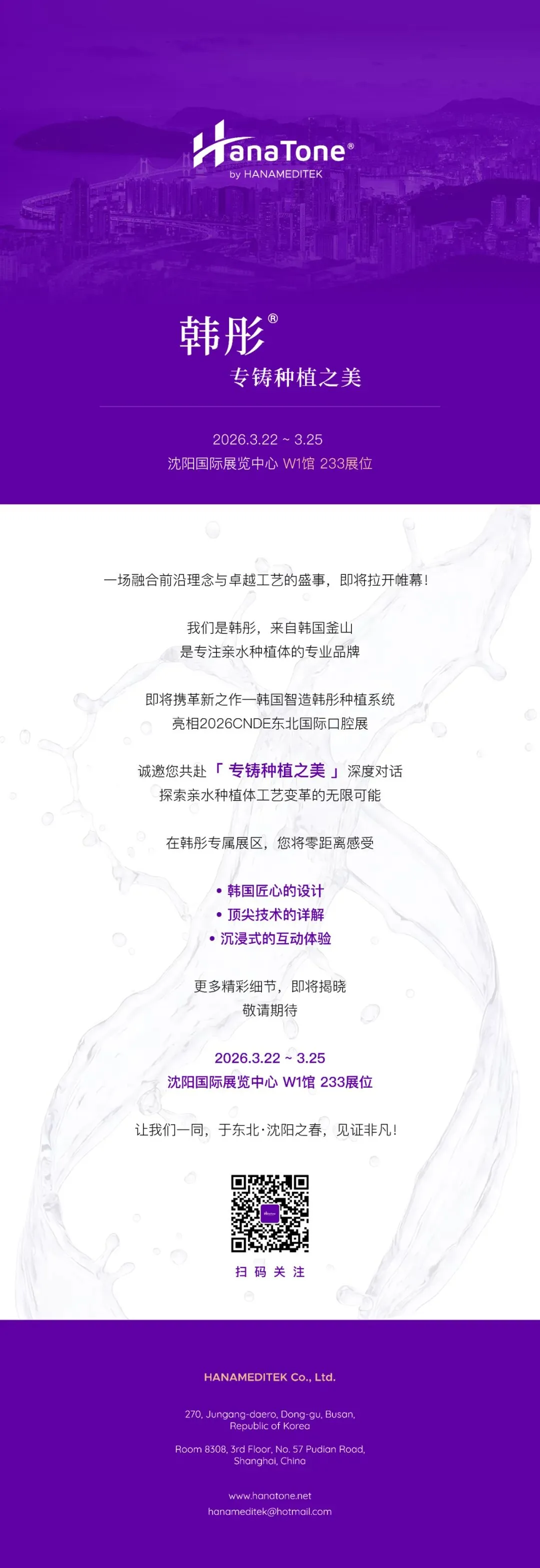 展会倒计时|韩彤亲水种植体东北国际口腔展「专铸种植之美」深度对话即将开启!