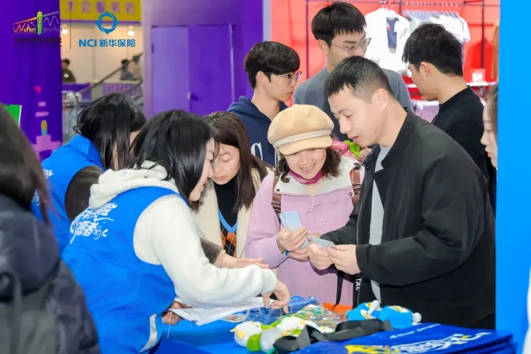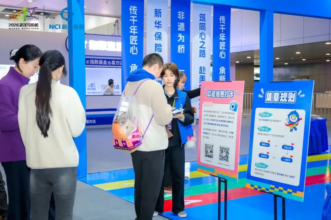 活动现场设置集章打卡环节,参与者领取集章卡后,依次前往互动区集章打卡。集满印章后在兑换区领取新华保险精心准备的2026武汉马拉松限定周边。