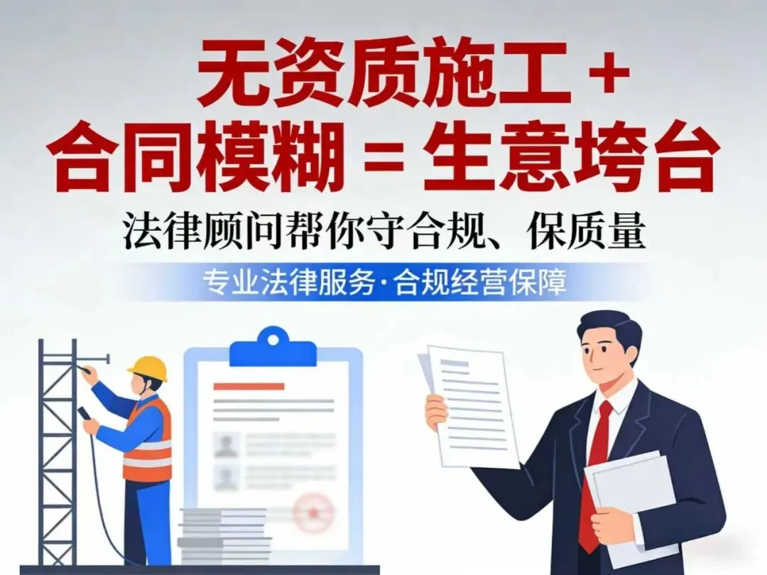 装修装饰行业产业链长、施工环节复杂,核心法律风险集中在经营合规(无资质施工、超范围经营)、工程纠纷(质量不达标、工期延误)、合同条款模糊(报价争议、责任划分不清)、安全责任(施工事故、财产损坏)四大板块,叠加《建筑法》《建设工程质量管理条例》《民法典》约束,一次违规施工、一起工程纠纷,就可能引发巨额赔偿、行政处罚,甚至吊销资质,薄利经营的中小企业,单起事故就足以拖垮整个生意。如同车主未交车险,装修装饰企业无法律顾问,易陷入合规处罚、纠纷扯皮困境,一次突发问题就可能让企业陷入绝境;聘请法律顾问,规范经营资质、审核装修合同、明确工程责任、防控安全风险,花小钱守住经营底线、规避巨额损失,是装修装饰企业稳健发展的核心保障。