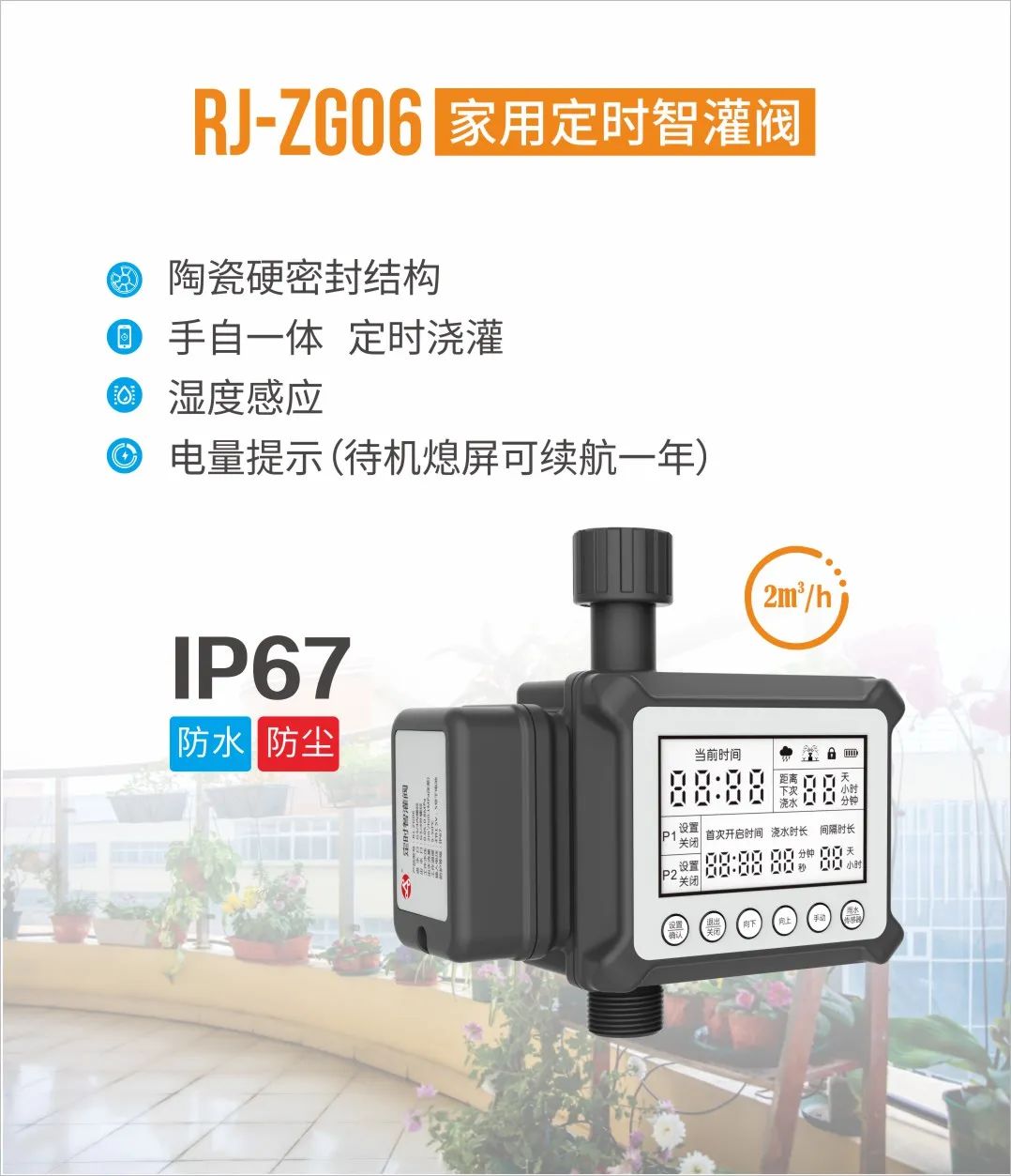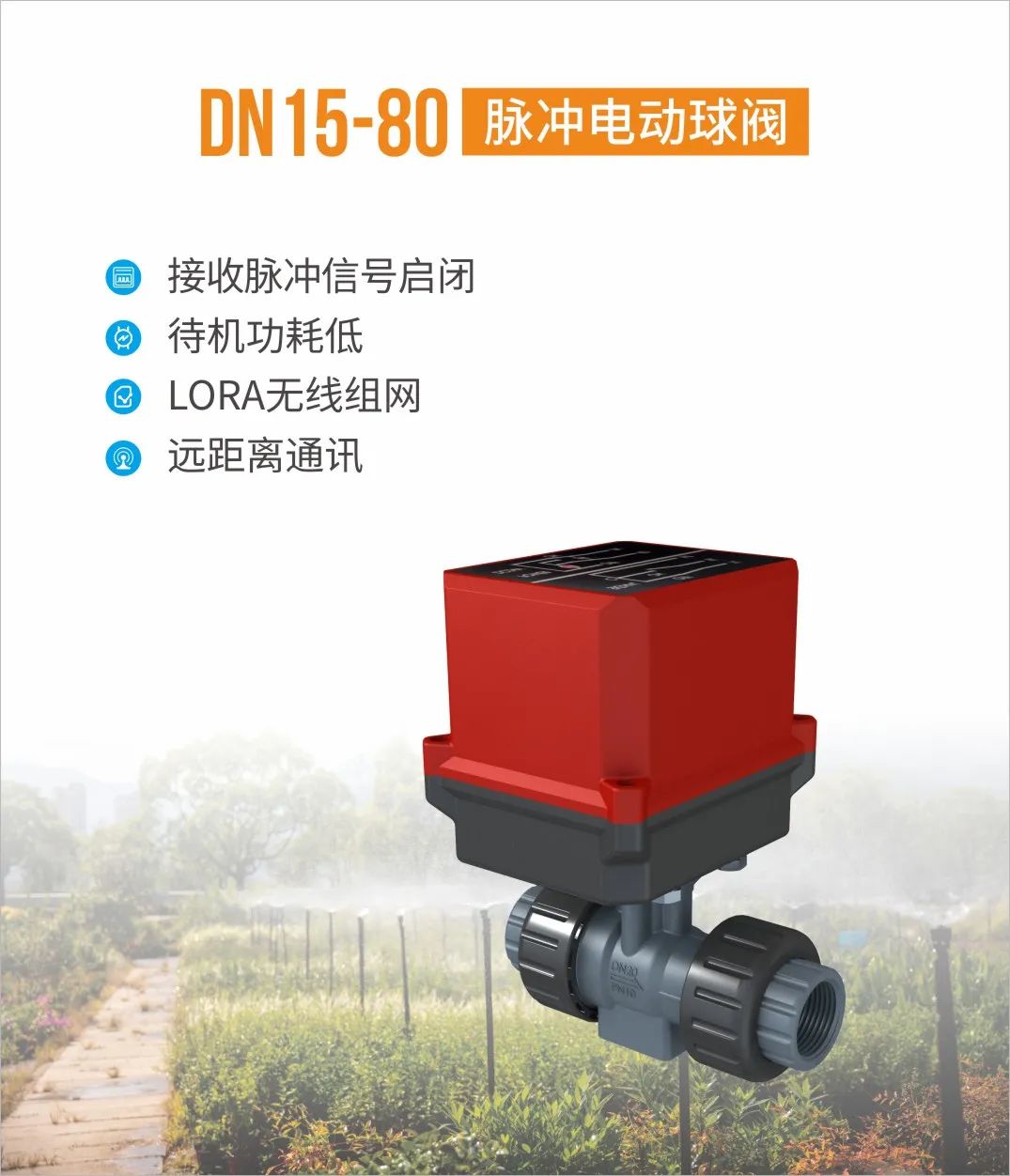 润景陶瓷硬密封球阀智能灌溉系统(简称“润景智灌阀”)是润新公司基于陶瓷硬密封球阀以及温度湿度传感器、物联网和光伏发电技术而研发的高效自动节水灌溉系统。它可根据土壤湿度情况自动灌溉,可通过手机/电脑实现远程控制灌溉,可接入数字化技术,在中心控制室进行可视化的集中高效管理,适用于市政园林浇灌、温室大棚灌溉、庭院阳台浇灌、农业大田灌溉等场合。