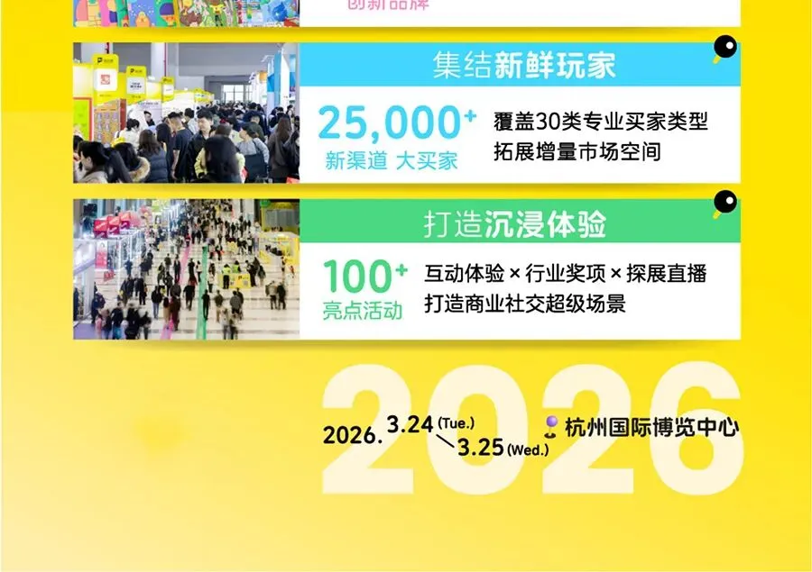 2026嗨创周·泛母婴生态创新周将于3月24-25日在杭州国际博览中心举办。以「让新锐灵感在柔软中生长」为主题,致力于创造更健康包容的行业生态,提供更活跃创新的商贸平台,助力所有母婴人轻盈成长,蓬勃增长!展会汇聚1,000+趋势品牌、集结25,000+新鲜玩家、打造100+沉浸体验,3月24-25日,杭州国际博览中心,创新不断,精彩升级!