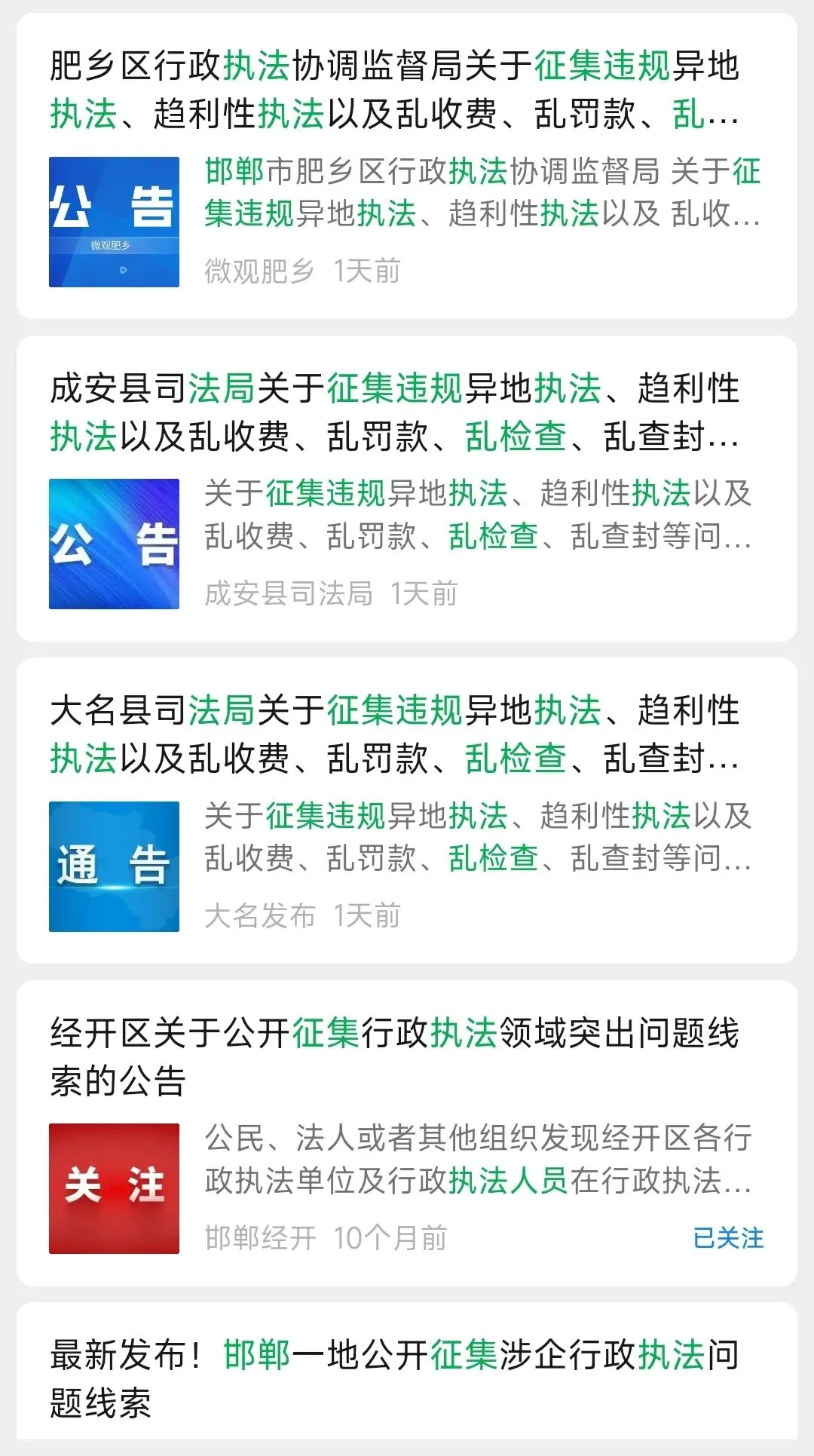 各地执法监督部门(司法部门)陆续征集行政部门违规涉企乱检查线索