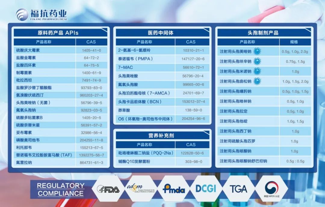 福建省福抗药业股份有限公司前身是创立于1958年的福州抗菌素厂,2002年改制成立股份有限公司。公司目前经营的品种包括抗病毒类药物中间体及原料药、抗感染类药物中间体及原料药、制剂、兽药和营养补充剂等产品。自本世纪初以来,公司实施可持续发展战略,在福清市江阴工业集中区投资建设现代化新厂区,产品质量达到国际先进水平。