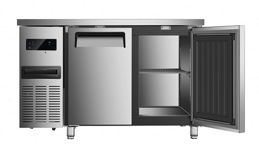 如果餐厅的厨房面积较小,可以选择操作台与冰柜一体的平冷操作台。上下两种功能的设计,下面满足制冷需求的同时,上面还能作为工作台面使用。优质不锈钢机身,内部一体化机组,数显触摸控制屏,操作便捷,状态清晰。冷凝器防尘网前置的设计,前部可以自由取下,方便清洗。