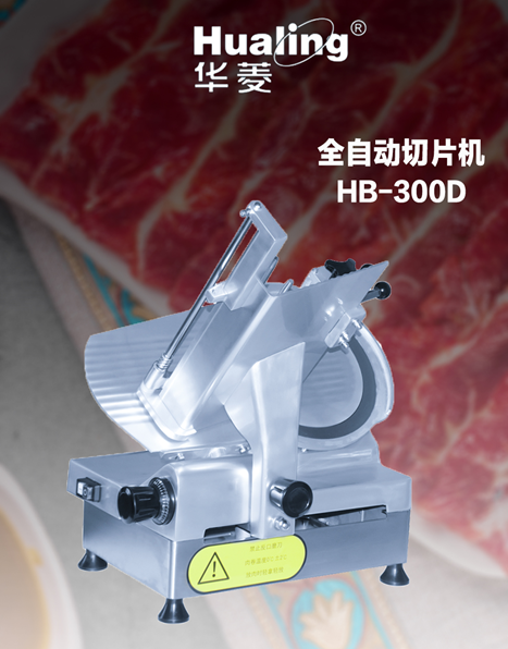 华菱的这款HB-300D, 12寸的全自动切片机是目前在国内市场最受欢迎的产品,适合生鲜超市以及中型火锅店,日料店使用。
