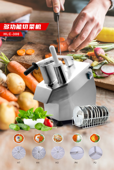 华菱的这款多功能切菜机,机身采用符合食品卫生要求的铝镁合金阳极氧化制造而成,锃亮精致,卫生耐用。切菜机的刀盘与食品直接接触,刀片选用食品级不锈钢材质。通过不同刀盘组合可切出多种不同形式不同尺寸的菜品。切片,切丝,切丁,切块,切厚、薄片、切四角丝、切圆丝、切条、切角块、切斜片、切断均可调。