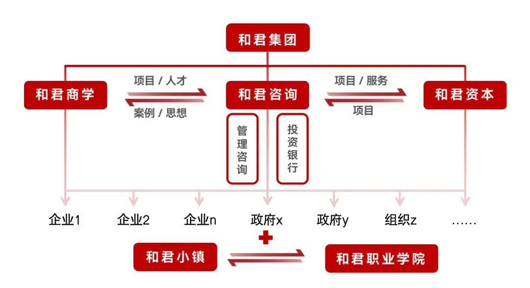 和君集团创建于2000年春,先后在北京和上海成立总部,在赣南森林深处建立和君小镇。和君集团三大业务为咨询、资本和商学。和君咨询是亚洲大型规模的综合管理咨询机构,拥有26年咨询经验,咨询队伍超过1000人,为政府、企事业单位提供卓有实效的思想、知识和解决方案。和君资本是倡导并践行赋能式投资的资本品牌,以股权投资的方式,为企业提供资金并赋能于企业,为财富人士或机构提供财富管理服务,累计管理股权投资基金100多亿元。