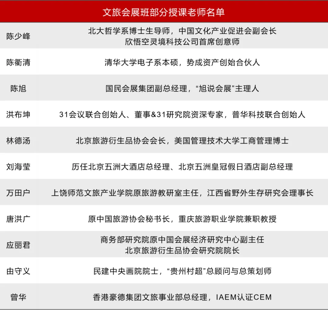 本届“文旅会展班”将继续获得北京旅游衍生品协会、中国会展经济研究会、国际会展经济专委会等行业组织的鼎力支持。截至目前,和君商学院文旅会展班校友已累计百余人。