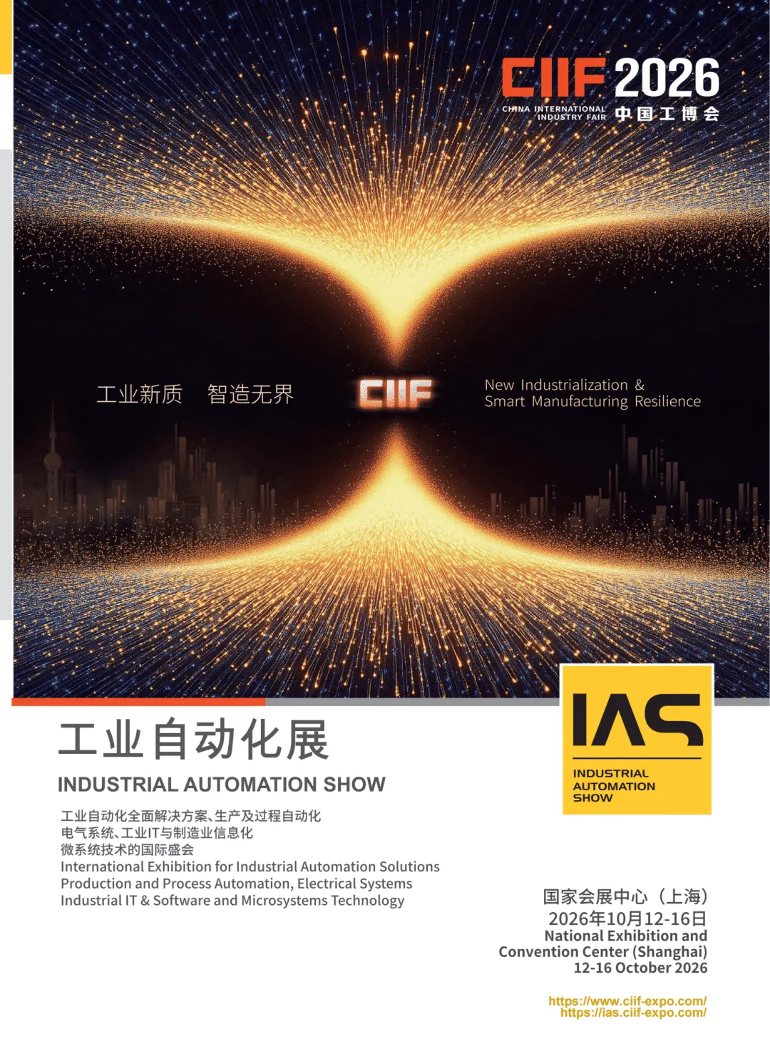 在全球制造业深刻变革的浪潮之巅,在“工业新质·智造无界”的时代主题引领下,第二十六届中国国际工业博览会(以下简称“中国工博会”)核心专业展——工业自动化展(IAS),将于2026年10月12日至16日在国家会展中心(上海)盛大启幕。这场全球自动化领域的巅峰盛会,现面向全球业界精英正式发出邀请,诚邀您共襄盛举,抢占产业升级新高地!