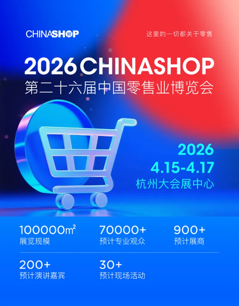 第二十六届中国零售业博览会将于2026年4月15-17日在杭州大会展中心盛大举办。展会预计达10万㎡超大展示空间,将继续以六大ZONE、9大主题子展,为优秀设施设备、尖端技术、创新解决方案、潮流商品与零售品牌提供最高效的展示交流空间。涵盖零售设施设备、创新技术、潮流商品与零售品牌等全产业链,现场活动不断丰富,从Hi-shop到Retail X-lab,从黑马专区到潮味VOGUE,从消费品渠道选品会到CCFA新消费论坛系列会议,内容涵盖之广,内涵专研之深,参与人员之众,成为零售行业每年必去的顶级盛事。