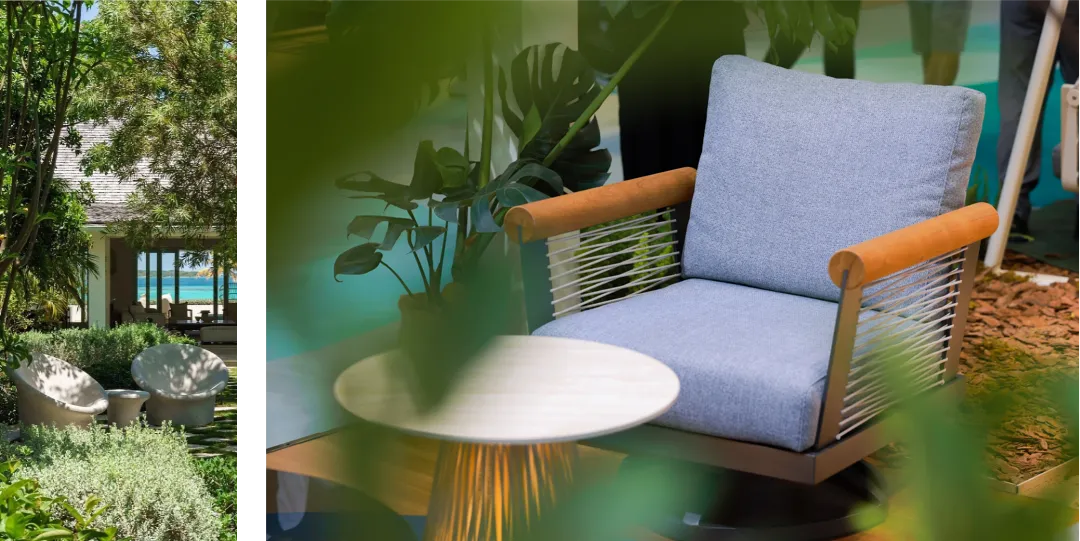 IP——野在摩登走向了另一种路径,通过更完整的空间叙事,把室内与户外打通:家具不再被固定在某一个空间里,而是在不同场景之间流动,从客厅,到露台,再到户外场景,形成一条连续的生活动线。