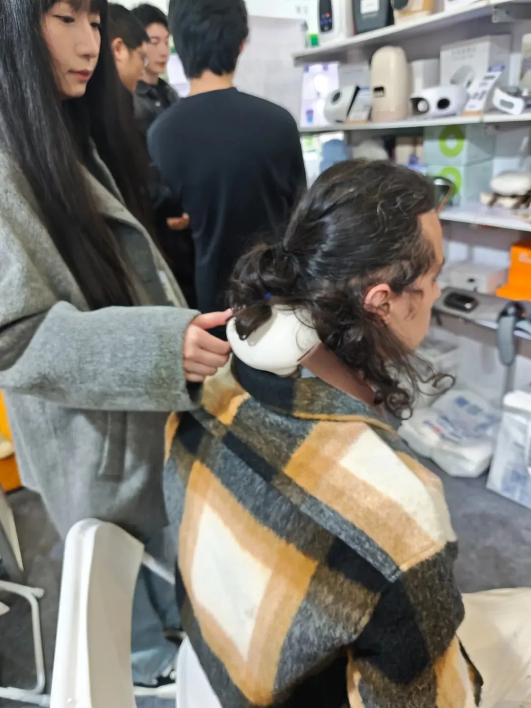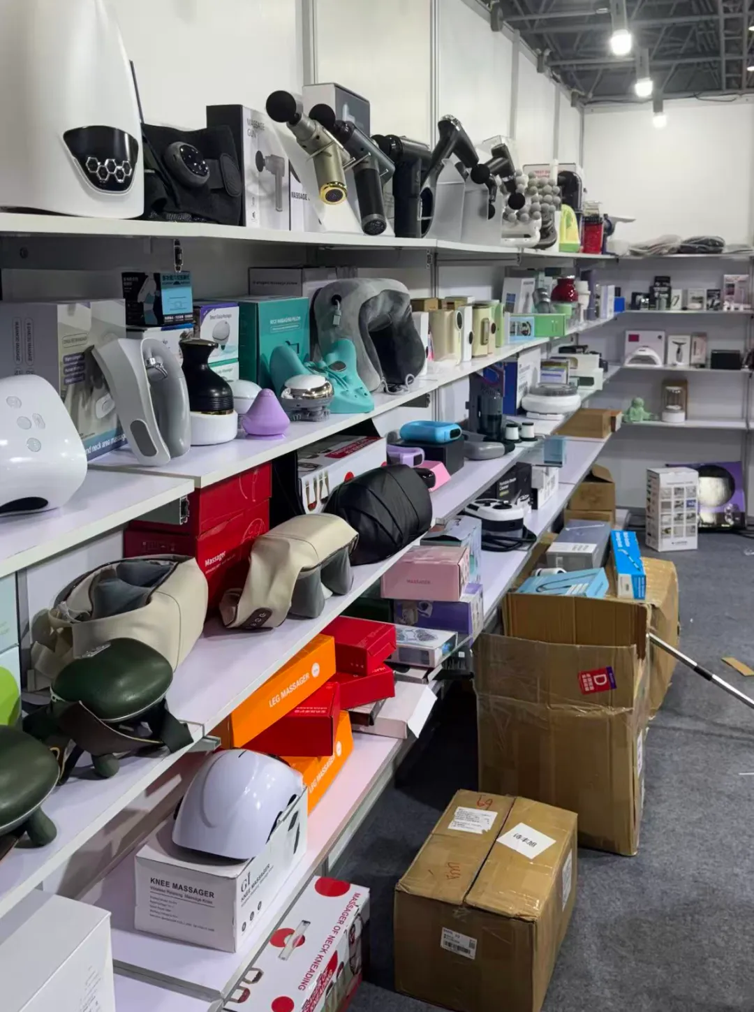 我们先简单介绍了我们的公司,以及这次参展重点展示的核心产品——各部位按摩器、各类筋膜枪;