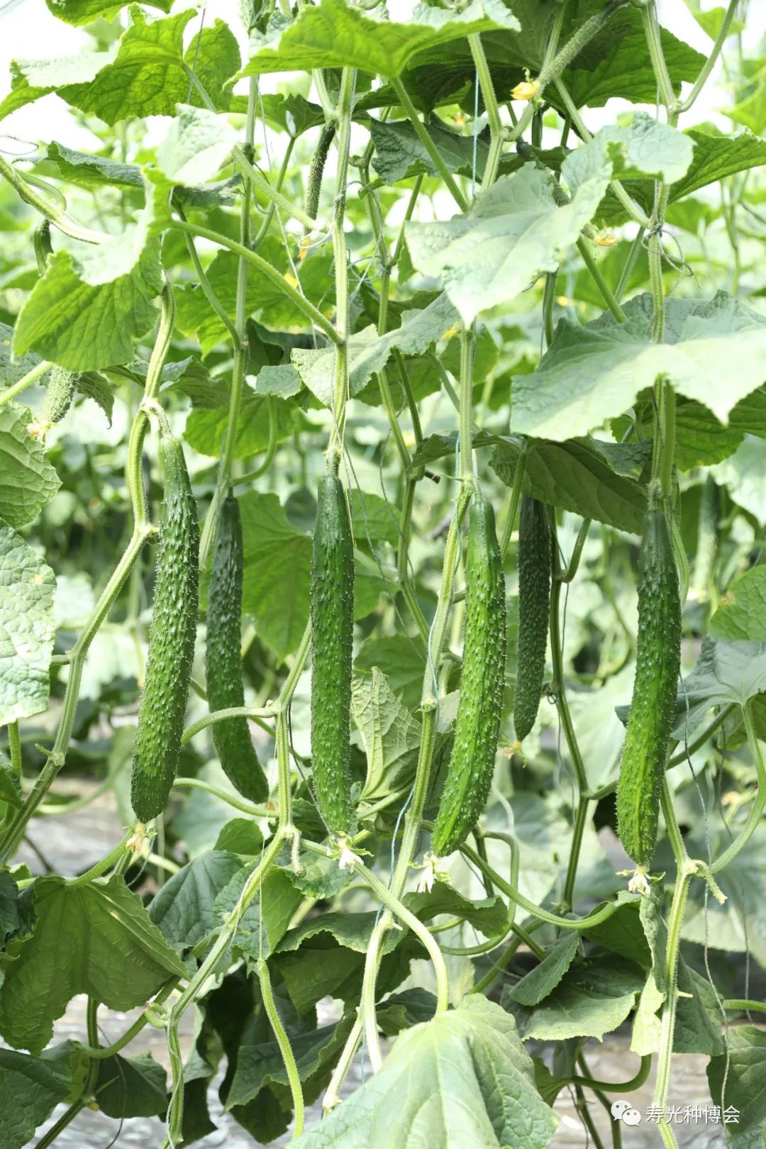 303植株长势强,高抗瓦瓦叶,抗黄点,抗白粉,瓜长36厘米左右,把短条直密刺,瓜色油亮,商品性好,适宜秋延、早春保护地栽培。